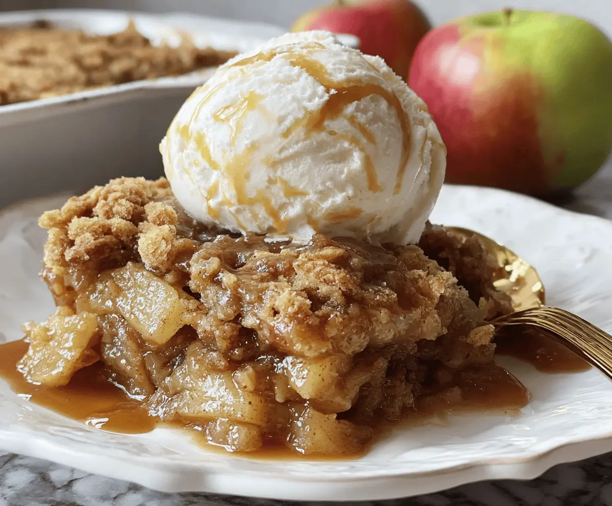 You just layer the ingredients and let the oven do the magic! I love serving it warm with a scoop of vanilla ice cream—pure happiness right there! 🍏🍰