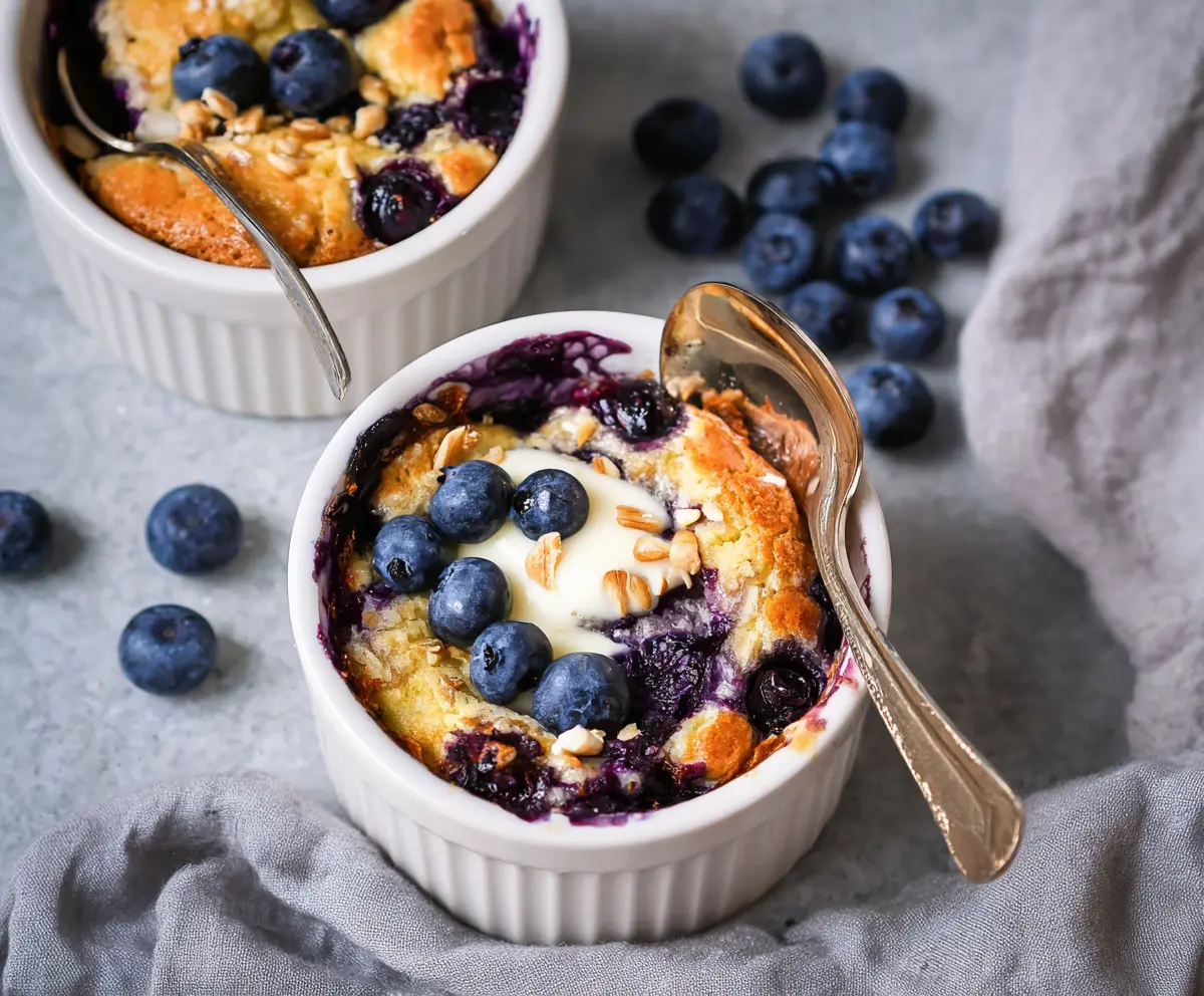 Once they’re done, carefully remove them from the oven and let them cool for a few minutes. This helps them set a bit more. When ready, top each bowl with extra blueberries and a sprinkle of sliced almonds for a delightful crunch.