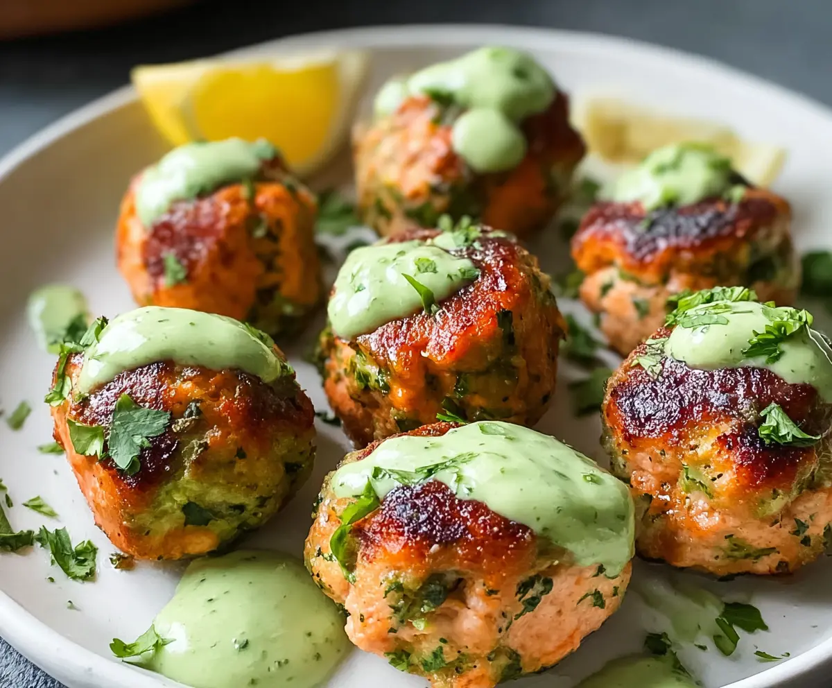 Enjoy these flavorful salmon meatballs with the creamy, tangy avocado sauce that brightens every bite!