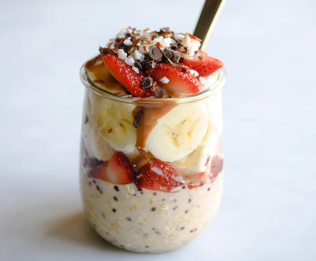 Rolled Oats: Rolled oats are perfect for overnight oats since they soak up the liquid well without getting mushy. You can use quick oats, but they may become too mushy. Steel-cut oats can also work, but you might need to adjust the soaking time.