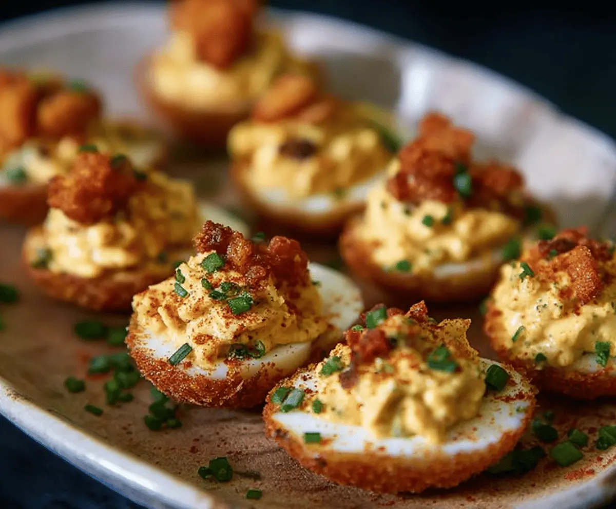 These Bayou-Inspired Deviled Eggs are a fun twist on the classic dish! Creamy yolks are mixed with zesty spices and a hint of kick, giving you a taste of the South in every bite.