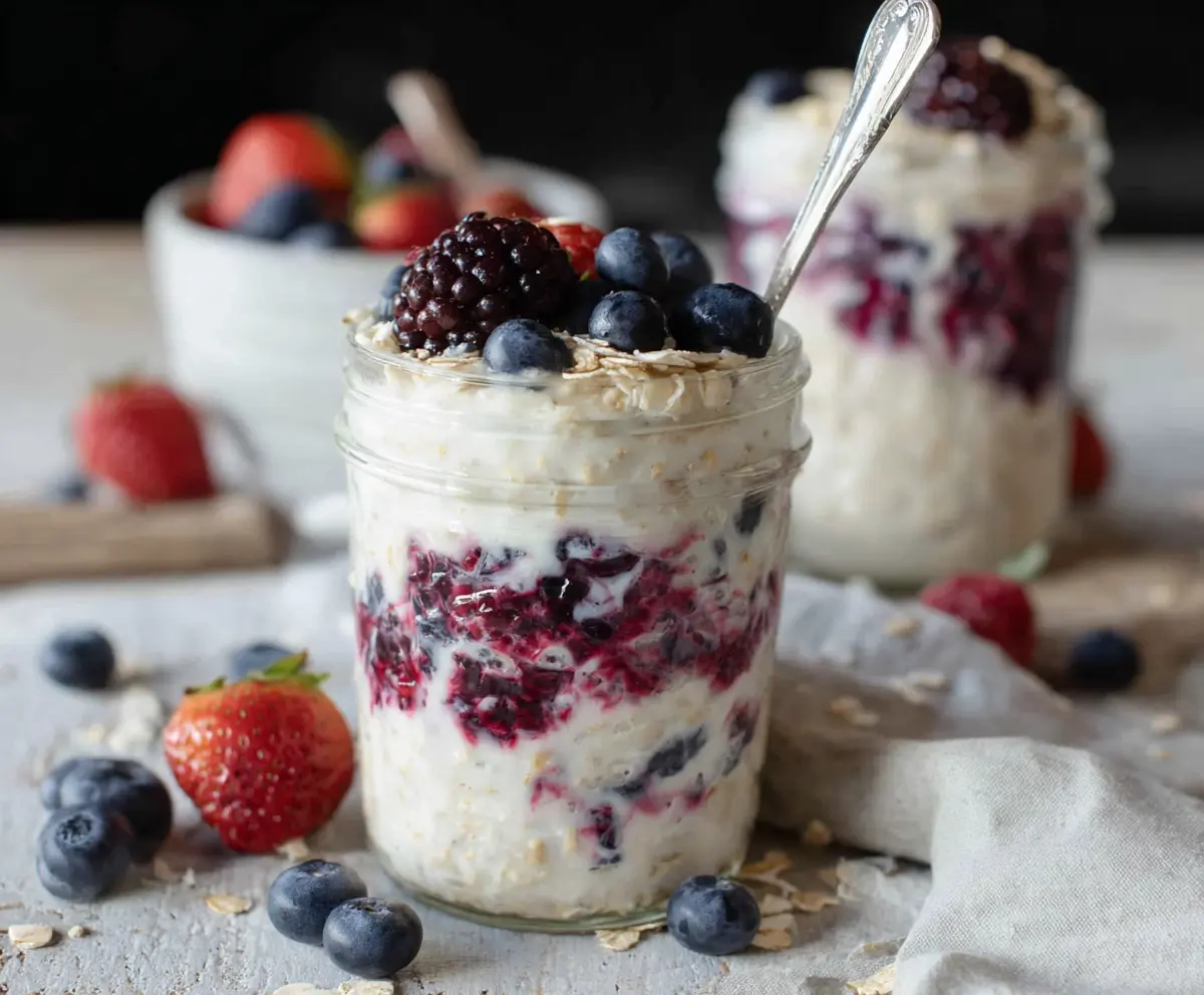 Mix oats, cream cheese, berries, and a bit of sweetness in a jar overnight. The next morning, you’ll wake up to a tasty breakfast that feels like dessert. Who could resist that? 🍓