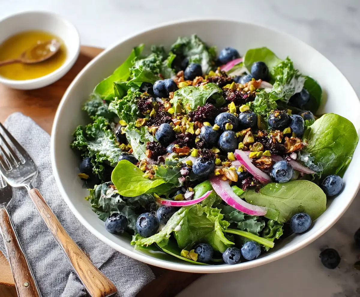 Who knew salad could be this exciting? The sweet blueberries and salty pistachios are a match made in heaven. I love to add a drizzle of balsamic for extra flavor—yum!