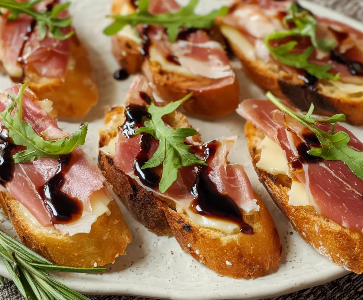 Getting the baguette perfectly toasted is essential for a great crostini! The right toast adds texture that pairs well with the creamy cheese and prosciutto.