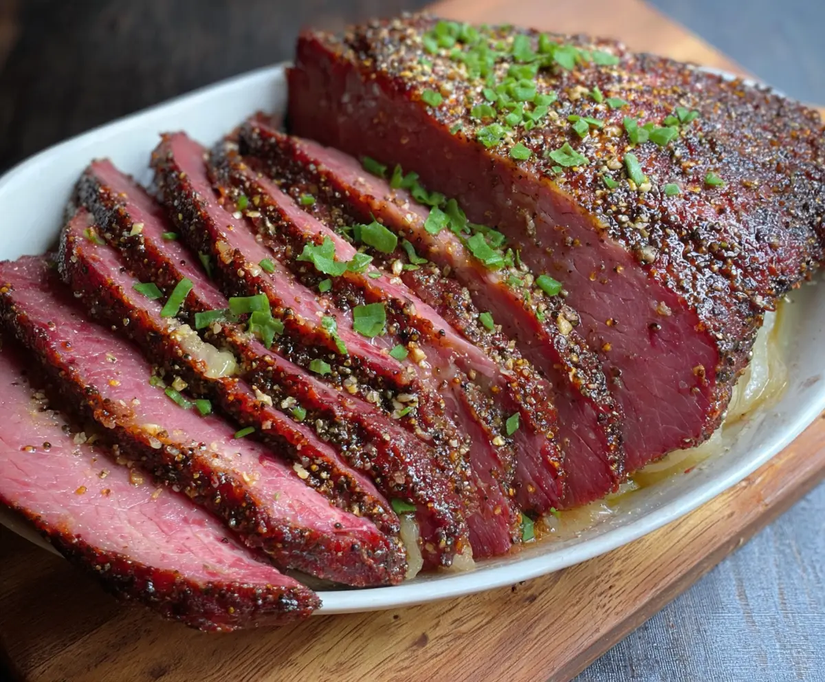 Garnish the sliced brisket with chopped green onions for a pop of color and freshness. Serve it with the cooking liquid as a flavorful jus, or pair it with horseradish or mustard cream sauce for an extra kick.