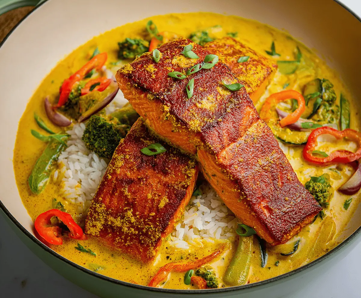 This Caribbean Coconut Curry Salmon is a delicious mix of flaky salmon and creamy coconut milk, all spiced up with vibrant flavors. It’s like a tropical vacation in a bowl!