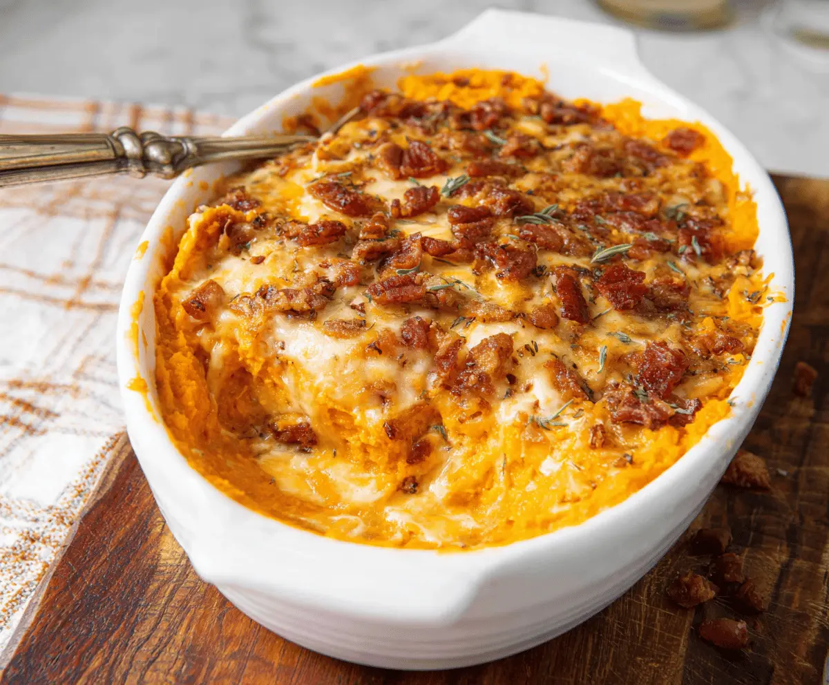 This Cheesy Sweet Potato Casserole is a warm hug in a dish! Creamy sweet potatoes meet gooey cheese for a truly comforting experience that’s hard to resist.