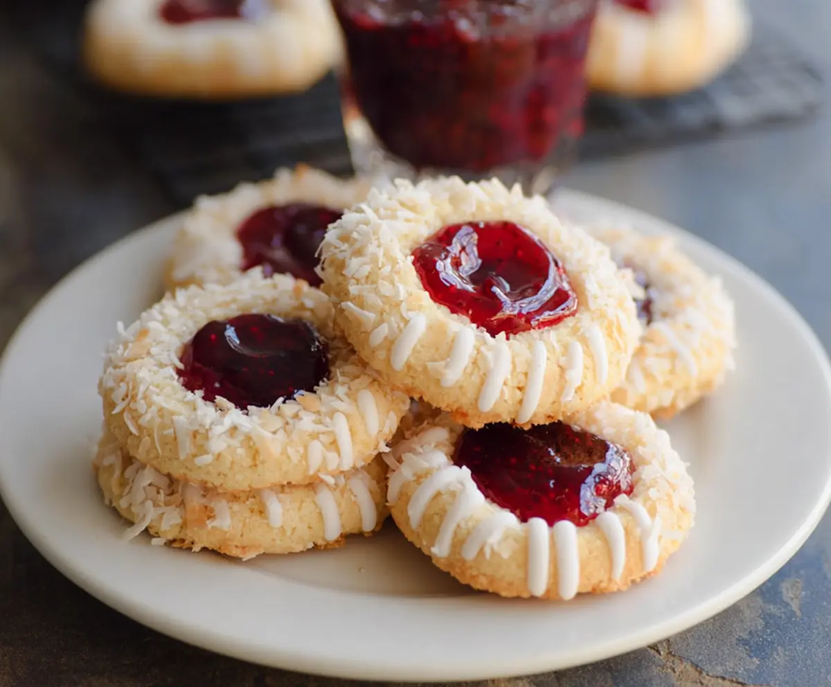 Enjoy these delightful Coconut Raspberry Thumbprint Cookies with a cup of tea or coffee—happy baking!