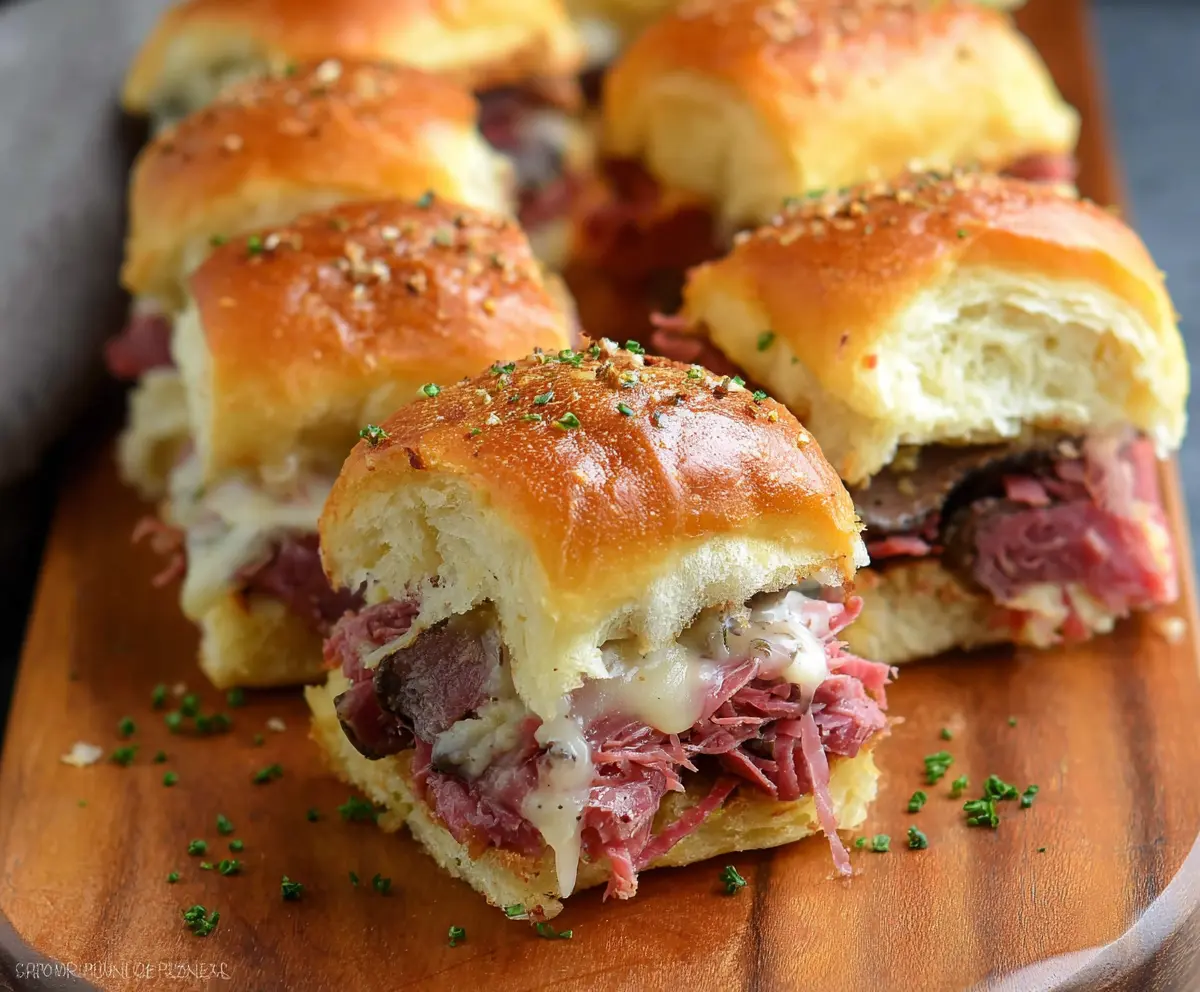 These corned beef sliders are tiny sandwiches packed with flavor! With tender corned beef and melty cheese between soft buns, they make a perfect snack or meal.