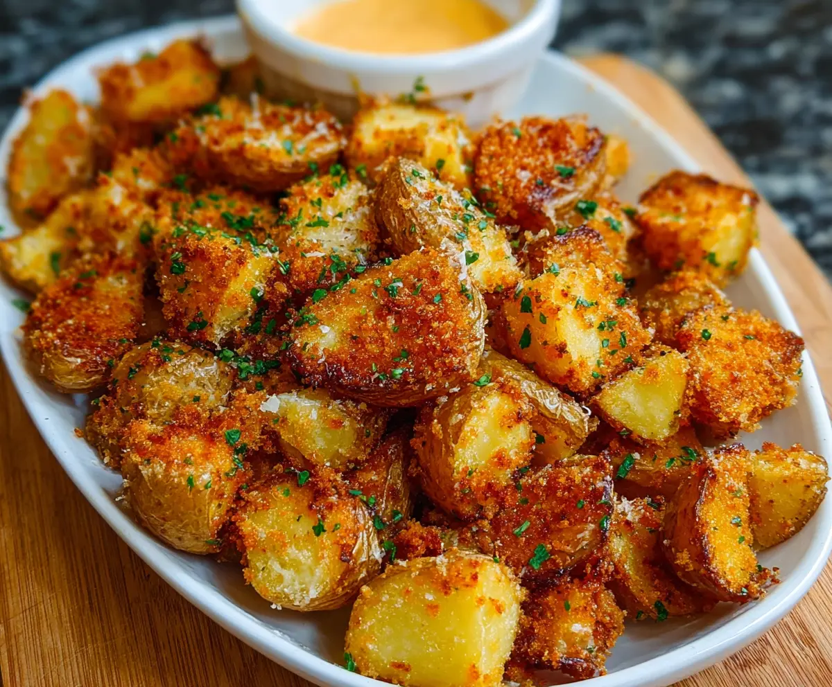 Serve your crispy crunchy Parmesan potatoes hot, along with your favorite dipping sauce, like garlic aioli or spicy mayo. Dive in and enjoy the delicious, flavorful crunch!