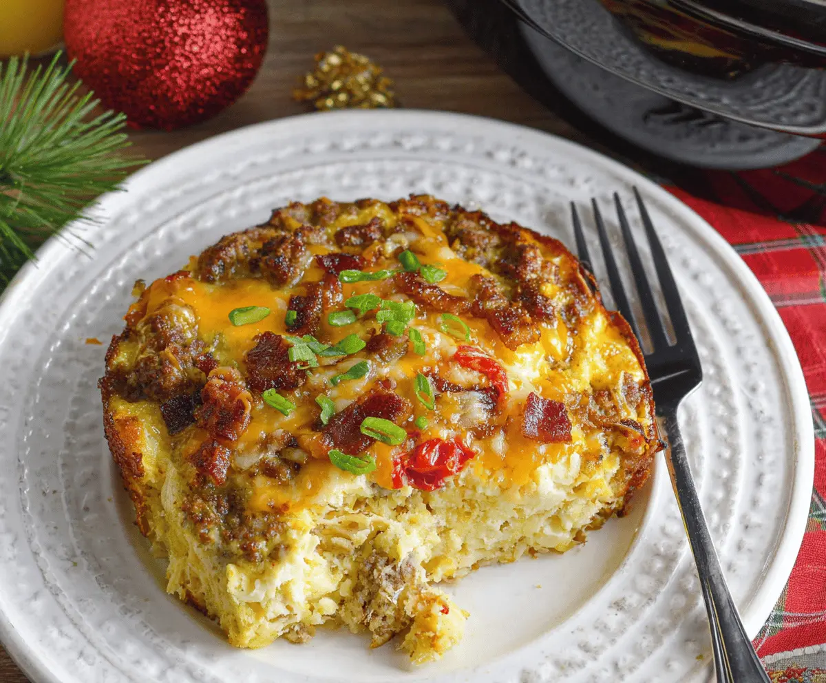 This Crockpot Christmas Breakfast Casserole is a festive delight! With eggs, cheese, and your favorite breakfast meats, it’s perfect for holiday mornings. Just set it and forget it!