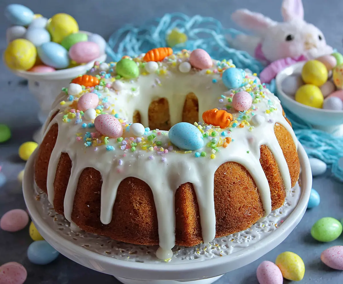 This delightful Easter Bundt Cake will take about 20 minutes to prepare, plus 50-60 minutes to bake. After that, you’ll need about 15 minutes to cool the cake, plus some time for decorating. In total, expect to spend around an hour and a half creating this festive treat!