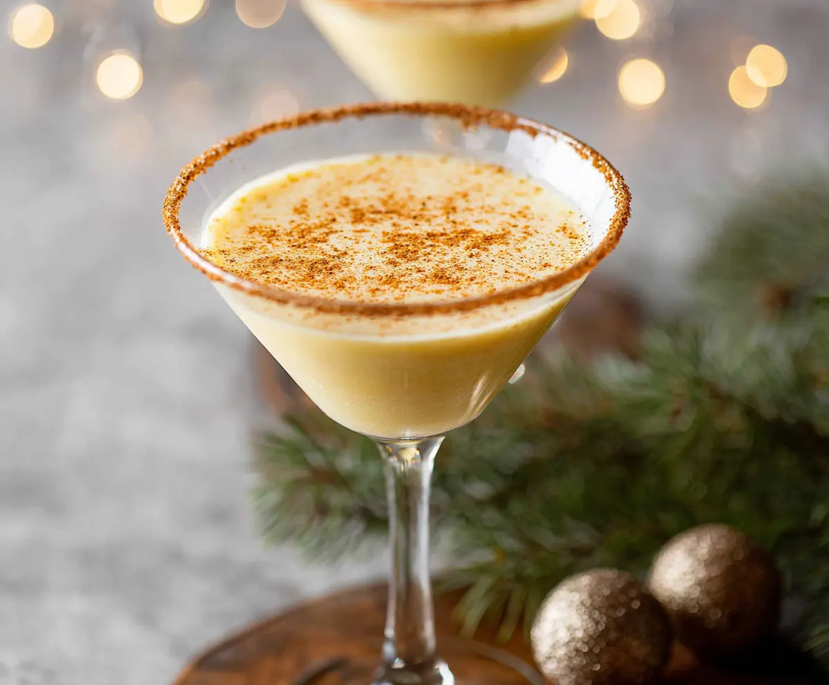 Creamy Eggnog Martini cocktail garnished with nutmeg in a stylish glass for holiday celebration
