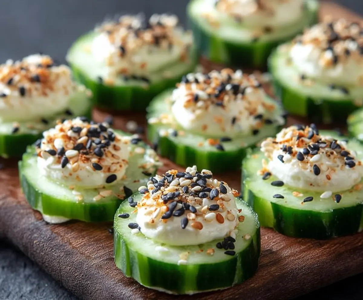 They’re super easy to make. Just slice your cucumber and spread on the cheese, then sprinkle on that tasty seasoning. Perfect for parties or a healthy treat any time! 🥒✨