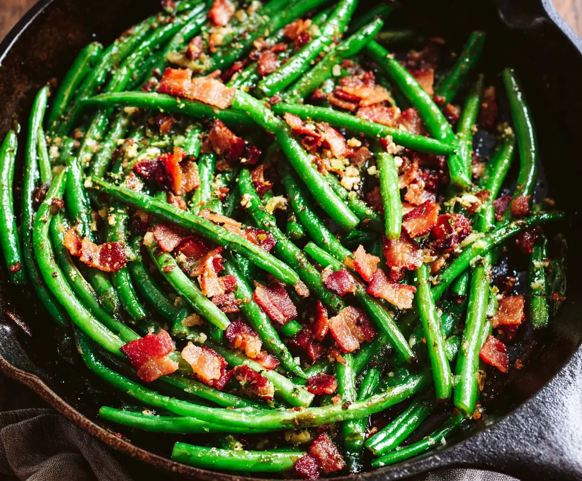 If the skillet seems dry while cooking the green beans, feel free to add a tablespoon of olive oil or some of the reserved bacon fat to add extra richness and flavor.