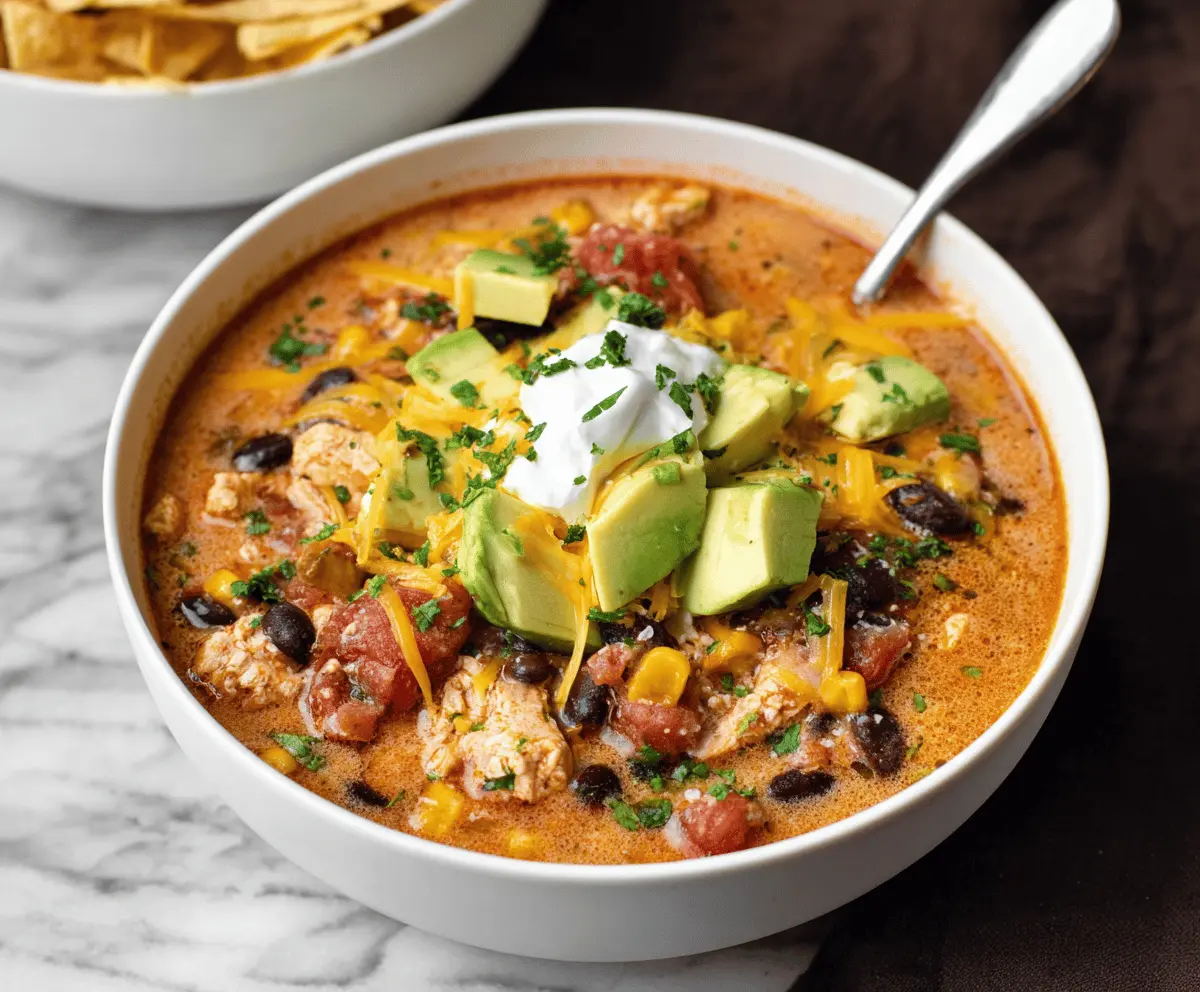 Enjoy your comforting Ground Chicken Taco Soup that’s both hearty and full of Mexican-inspired flavor!