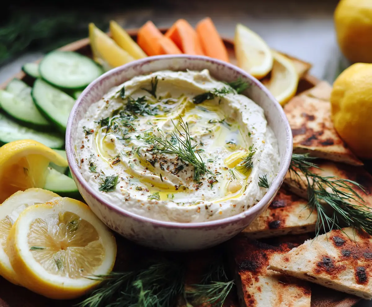 Serve the dip with fresh vegetable sticks (like carrots and cucumber slices) on one side and toasted pita or flatbread triangles on the other. It’s great for sharing!