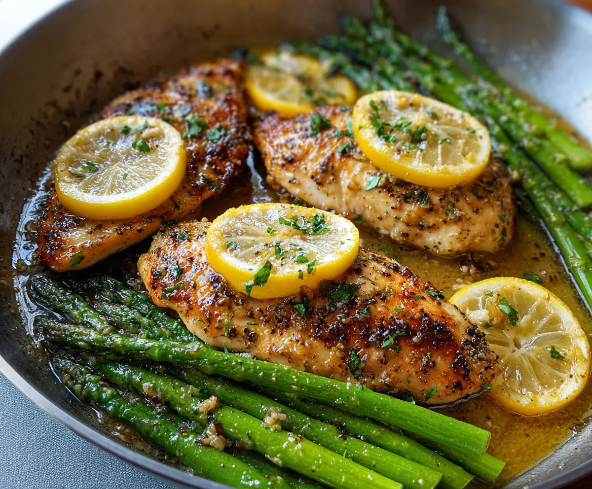 This Lemon Butter Garlic Chicken with Asparagus is a tasty, wholesome dish. Imagine juicy chicken coated in zesty lemon and buttery garlic, paired with tender asparagus—yum!