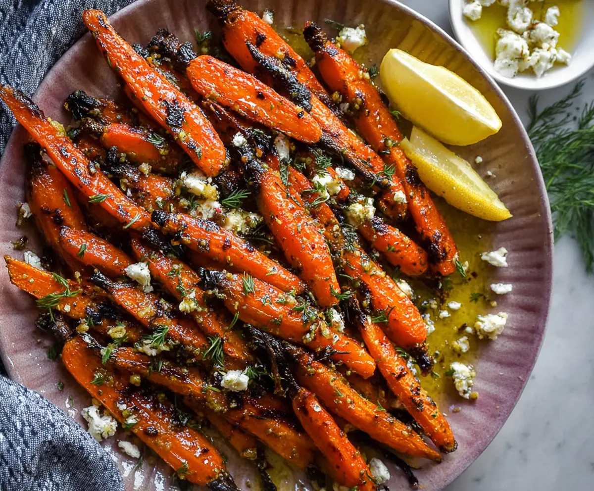 This recipe gives you beautifully roasted carrots coated in a tangy lemon Dijon dressing, topped with aromatic dill and a sprinkle of feta cheese if you choose. It’s a flavor-packed dish that’s sure to impress!