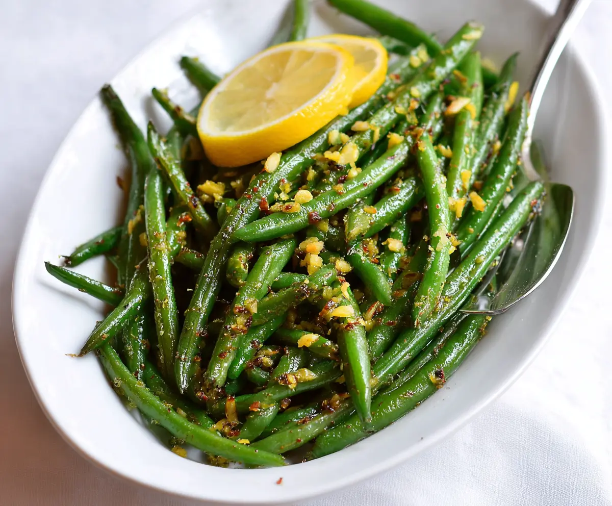 Fresh Lemon Green Beans dish seasoned with herbs, vibrant and appetizing.