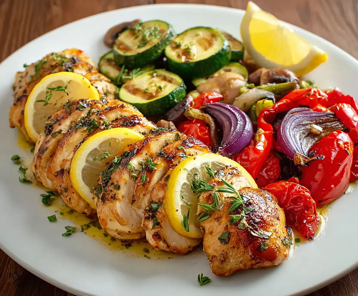 This Lemon Herb Chicken is juicy and packed with flavor, thanks to a zesty lemon marinade and fresh herbs. Pair it with colorful roasted veggies for a healthy meal!