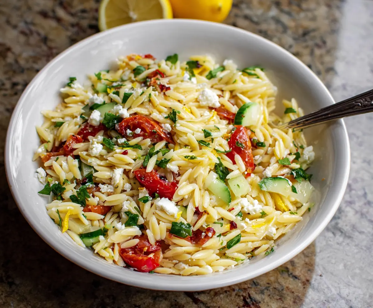 This Lemon Orzo Pasta Salad is a bright and refreshing dish that’s perfect for any meal. It combines fluffy orzo pasta with crunchy veggies and a zesty lemon dressing.