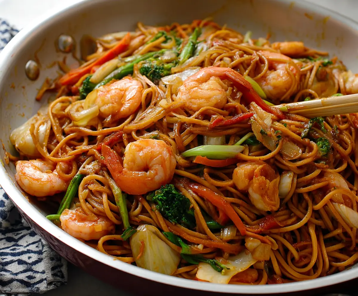 This Lo Mein Shrimp dish is a tasty mix of soft noodles, fresh veggies, and juicy shrimp coated in a yummy sauce. It’s colorful and smells amazing while cooking!