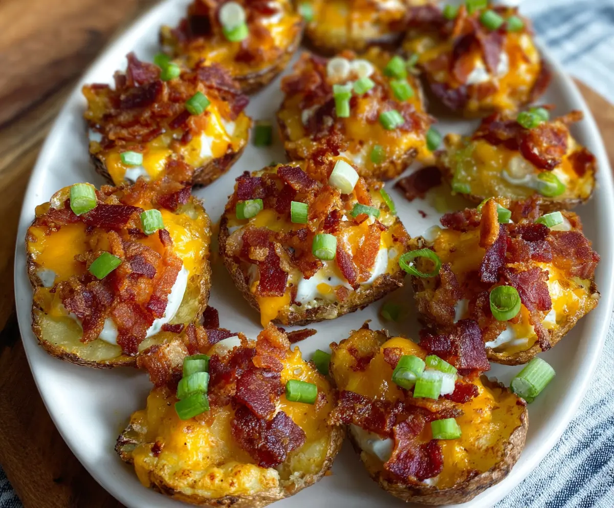 These Loaded Mini Potato Bites are tasty little snacks topped with cheese, bacon, and green onions. They are perfect for parties or just a cozy night at home!