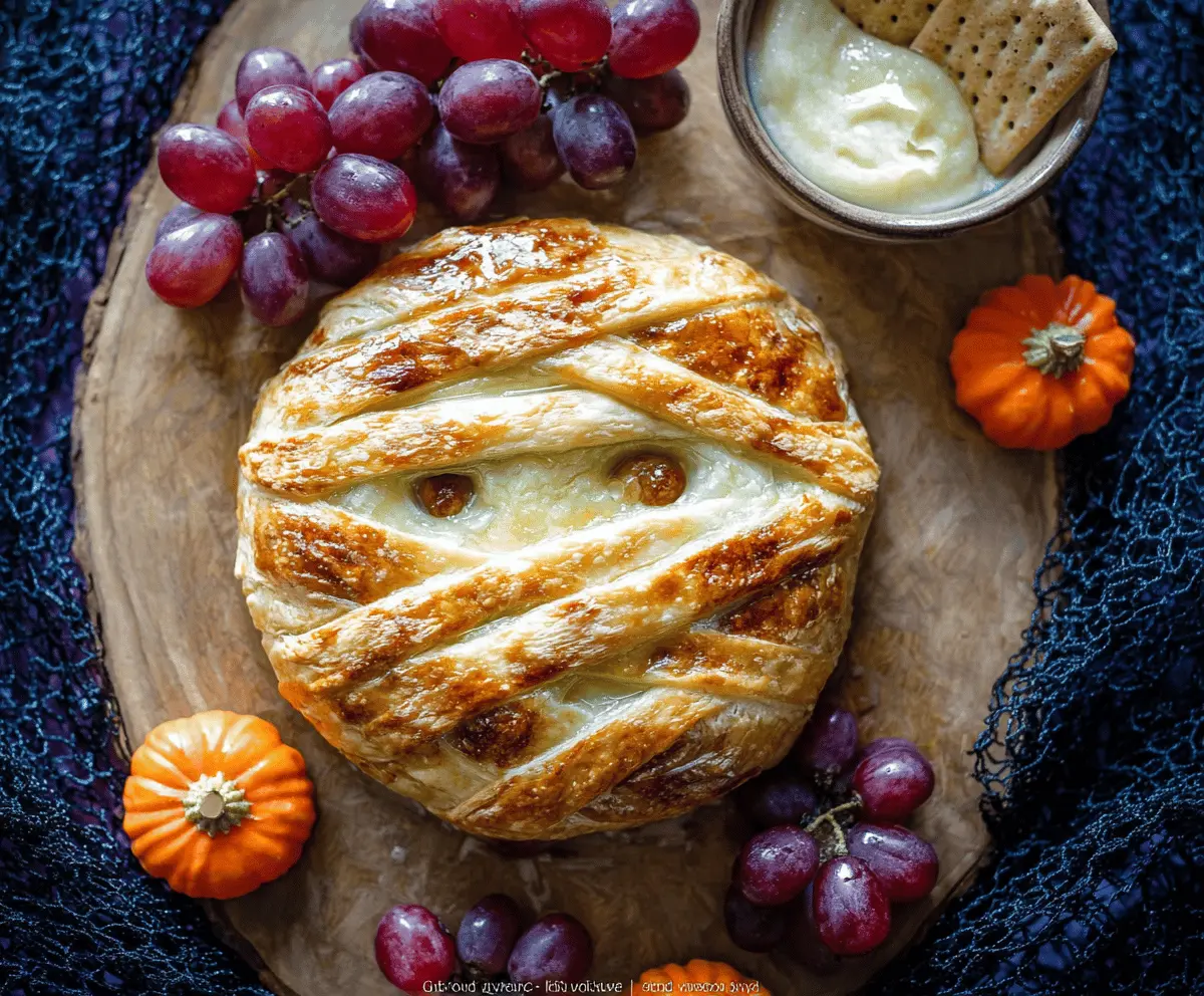 Enjoy pulling apart the warm, gooey brie from its mummy wrapping for a spooky and delicious treat!