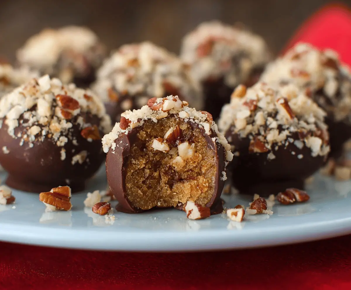 While the chocolate is still wet, sprinkle the remaining chopped pecans over the truffles or roll them in pecans for that crunchy finish. They’ll stick beautifully onto the chocolate!