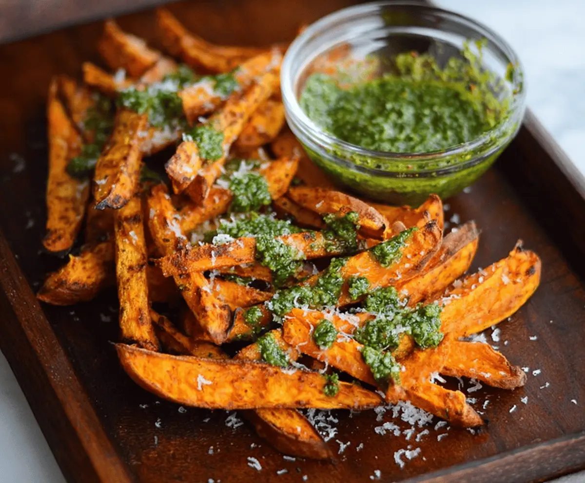 Enjoy making these Pesto Sweet Potato Fries! They’re a great side dish or a delicious snack.