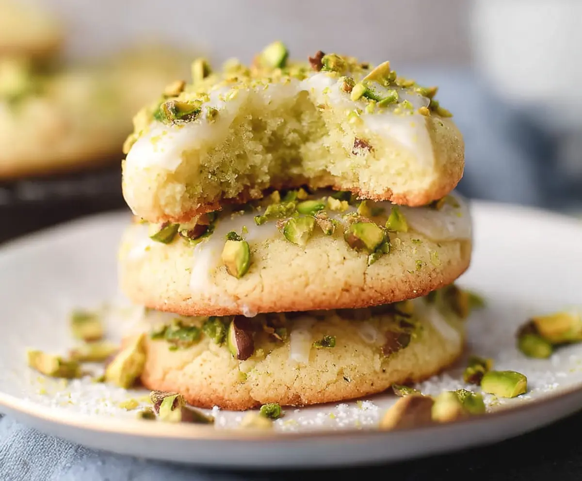 Once the glaze has set, your soft, tangy lemon-flavored cookies with crunchy pistachio toppings are ready to enjoy! Happy baking!