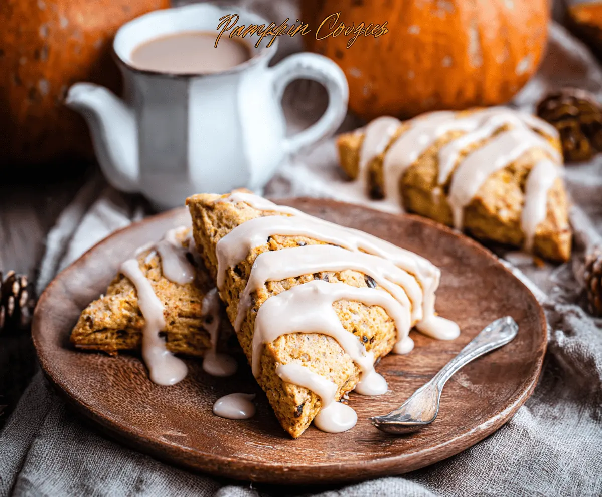 Enjoy your warm pumpkin scones drizzled with sweet maple icing—perfect with a cup of tea or coffee!