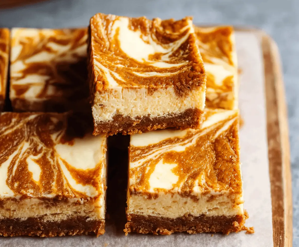 These Pumpkin Swirl Cheesecake Bars combine creamy cheesecake with a hint of pumpkin spice, making them perfect for fall! The swirl design adds a lovely touch.