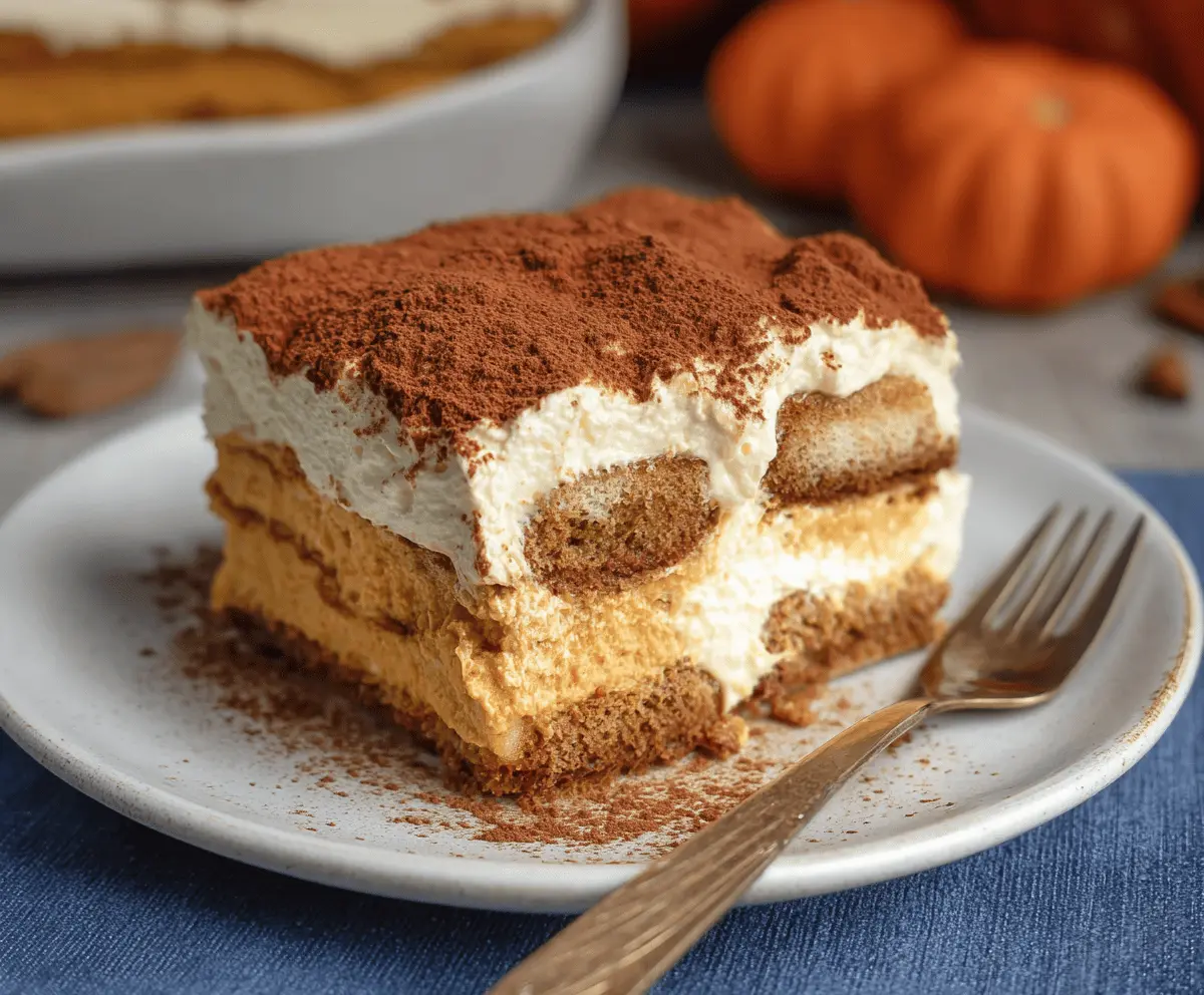 Enjoy a slice of this tasty pumpkin-flavored tiramisu, perfect for fall gatherings or any time you crave something sweet and cozy!