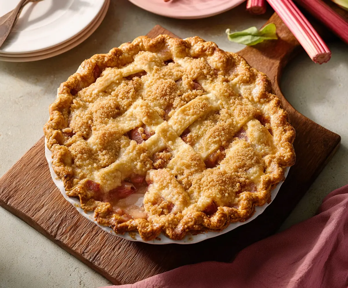Rhubarb: The star of this pie, rhubarb adds a tart flavor. If you can’t find fresh rhubarb, frozen works in a pinch; just thaw and drain excess liquid. Some variations even use strawberries for added sweetness.