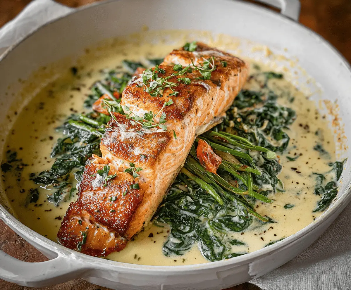 This Salmon Florentine is a delightful dish featuring tender salmon atop a bed of spinach, all smothered in a creamy garlic sauce. It’s rich, tasty, and perfect for impressing guests!