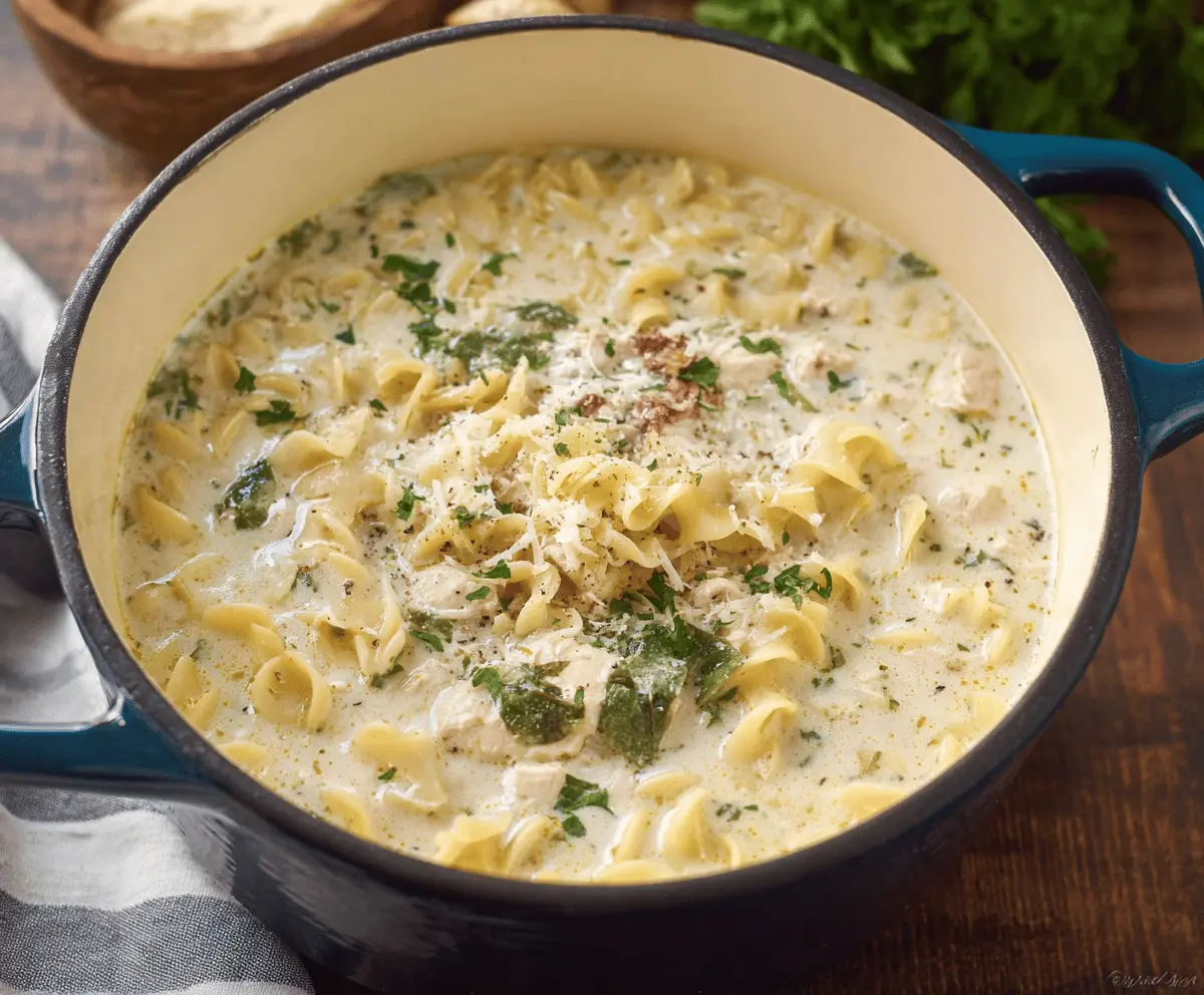 This Slow Cooker White Lasagna Soup is warm and comforting with layers of flavor. Packed with creamy cheese, tender noodles, and delicious chicken, it feels like a cozy hug in a bowl!