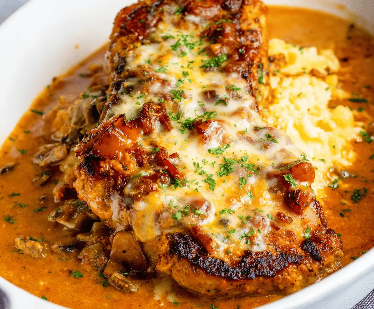 This Smothered Pork Chop Casserole is a warm and cozy dish with tender pork chops, creamy sauce, and comforting veggies. It’s like a big hug on a plate!