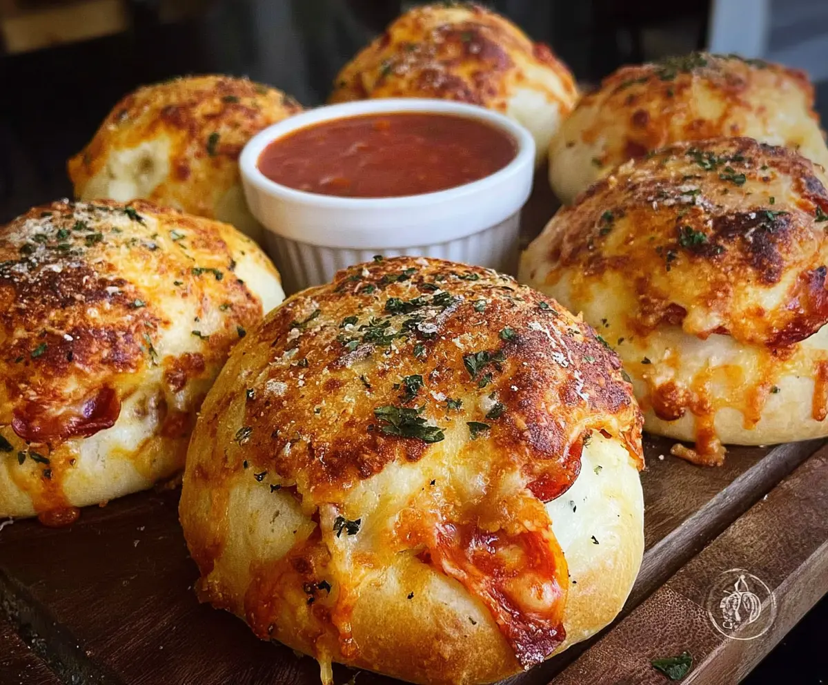 Enjoy deliciously cheesy and herby sourdough pizza bombs with gooey mozzarella oozing out!