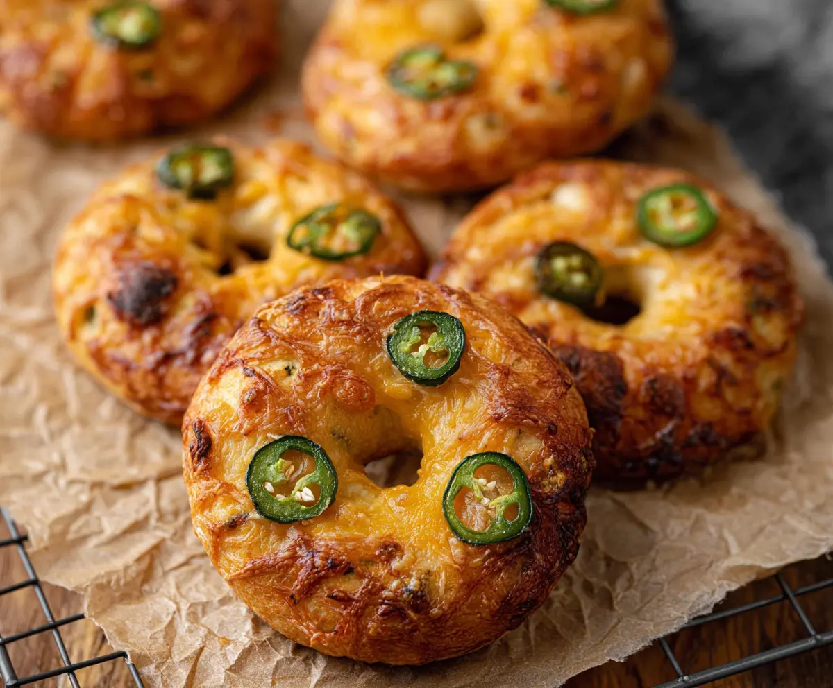 These Spicy Jalapeño Cheddar Bagels are a tasty treat! With spicy jalapeños and gooey cheddar baked right in, they’re perfect for breakfast or a snack.