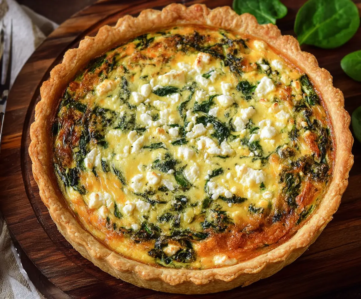 This spinach feta quiche is a tasty mix of fluffy eggs, fresh spinach, and creamy feta cheese all tucked inside a flaky crust. Perfect for breakfast, brunch, or even a light dinner!