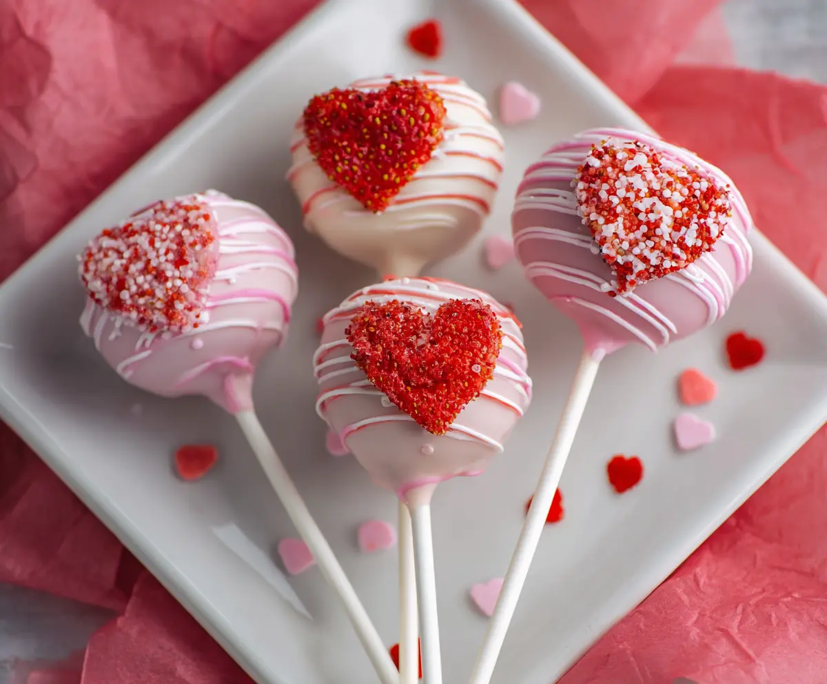 After they’re set, arrange your beautiful strawberry heart cake pops on a plate, and they’re ready to impress! Perfect for Valentine’s Day or any special occasion!