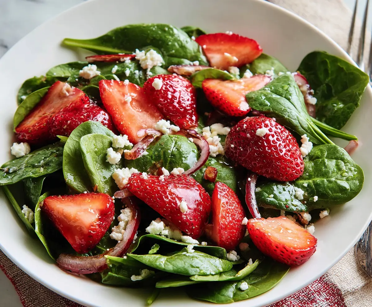 This strawberry spinach salad is a fresh and colorful dish that brings together sweet strawberries, crisp spinach, and crunchy nuts. Perfect for a light meal or side!