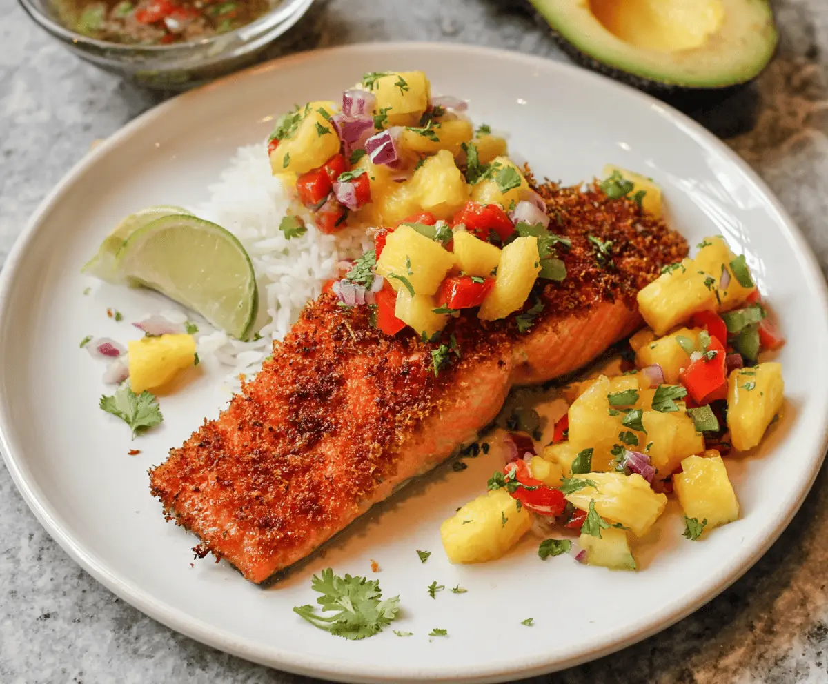 Tropical Coconut Crusted Salmon With Pineapple Salsa